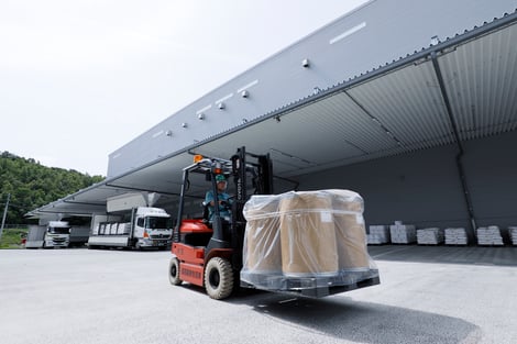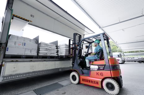 三栄源エフ・エフ・アイの工場から出荷されてくる製品や各メーカーから納品される原料を、フォークリフトを使用して、トラックから荷下ろしや積み込みを行う業務を担当しています。一般的に「荷受場」と呼ばれているところで、当社に荷物を運んできてくれるトラックドライバーの窓口です。